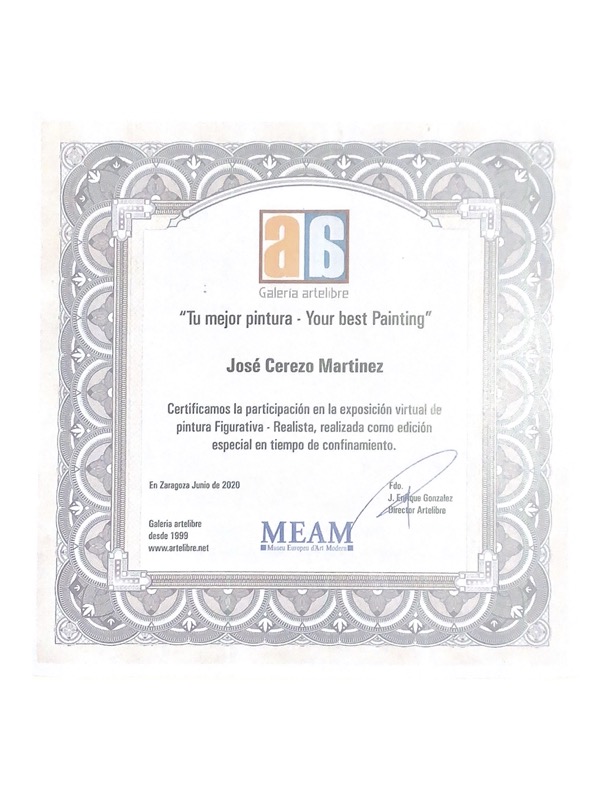 Durante el confinamiento, participé en la exposición virtual de arte figurativo realista contemporaneo junto con más de 200 artistas de todo el mundo. El evento fue colaborado por el Museo Europeo del Arte Moderno, la galería ArteLibre y la web china CLATIA. La obra seleccionada se titula Mi Padre, un retrato realizado en acuarela.
